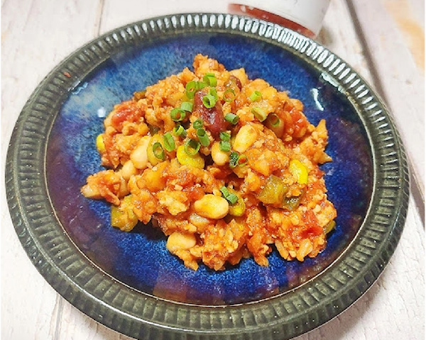 華やかに香る赤唐辛子の香りと、辛さの中にコクがある「赤ごしょう」を使ったチリコンカンです。